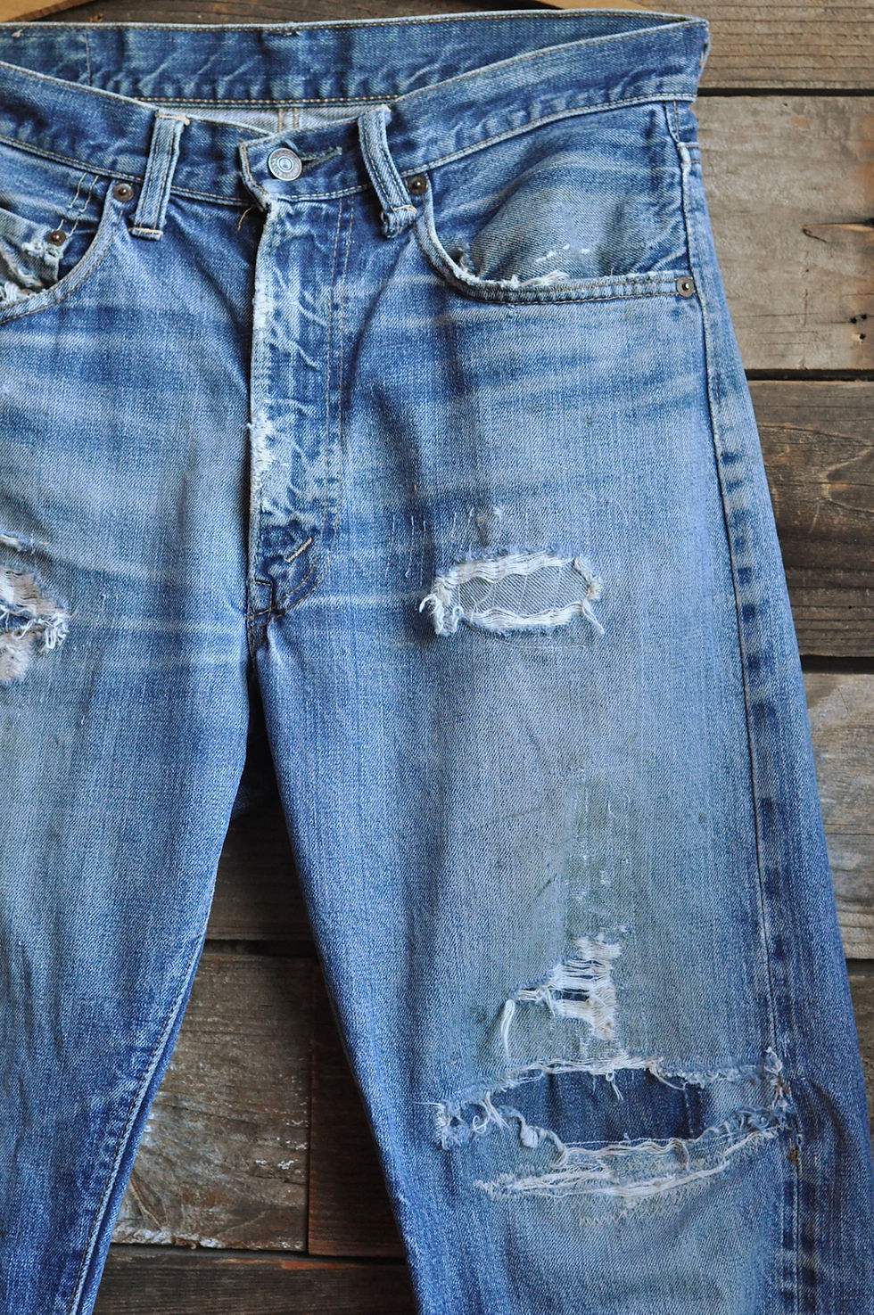 Vintage 1960s Repaired Big E 60s Selvedge 505 Levis Redline Jeans | 33x28